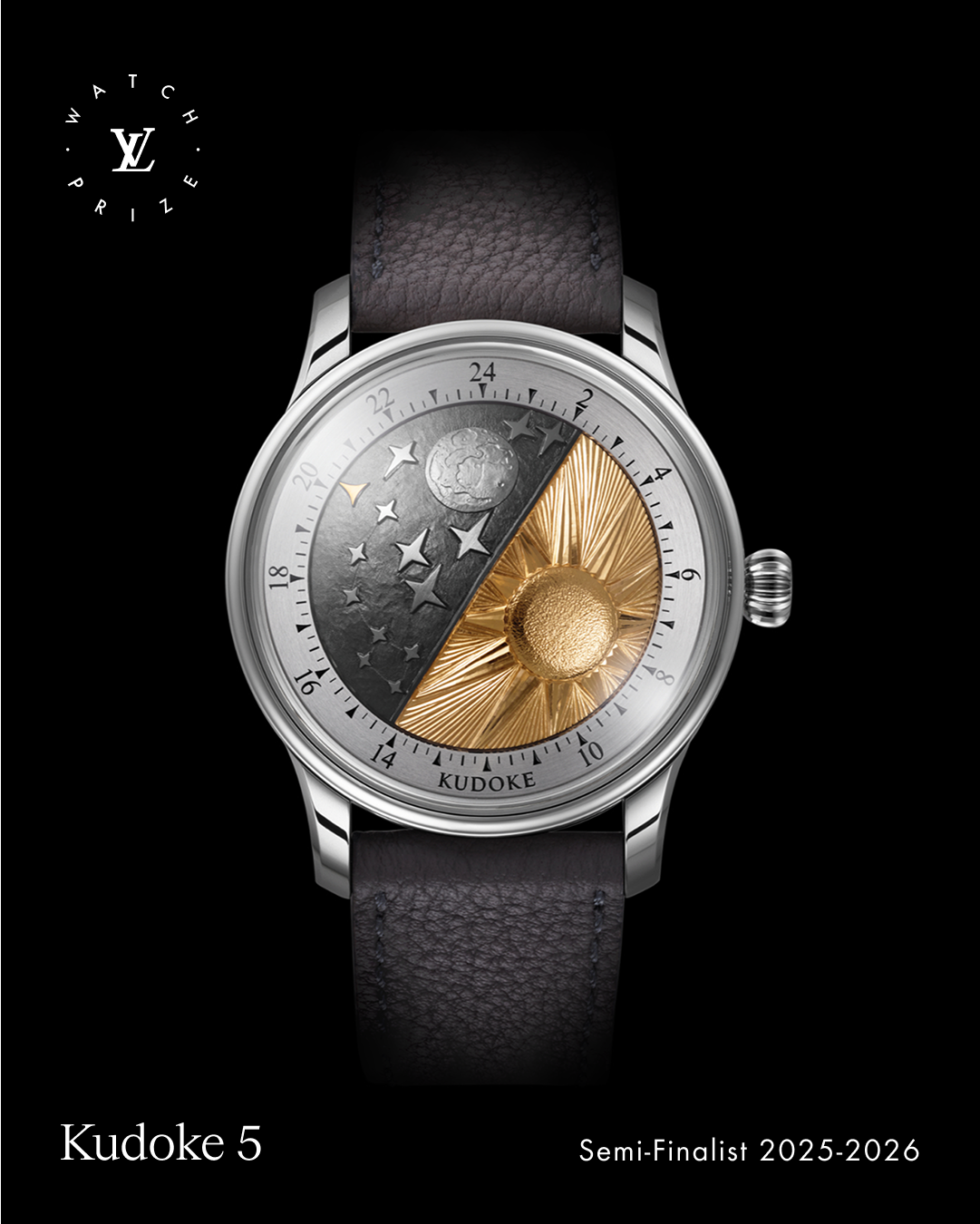 Wir sind stolz, mit KUDOKE 5 zu den 20 Semifinalisten des renommierten Louis Vuitton Watch Prize for Independent Creatives zu gehören – ausgewählt aus hunderten Bewerbungen weltweit. Der Preis würdigt visionäre unabhängige Uhrmacher und feiert technisches Können, künstlerischen Ausdruck und handwerkliche Exzellenz.